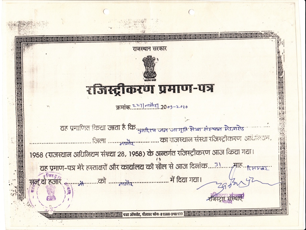 | Name of the Trust | ADITYA JAN JAGRITI SEWA SANSTHAN |